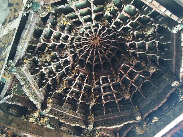 这是妈祖庙里穹顶的样子,导游说,里面没有用一根钉子,就是靠木头和木头之间的特殊结构,建造而成,记得北京天坛的顶也有类似的结构。