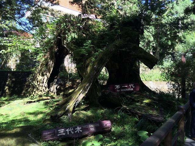 阿里山三代木~由三棵树组成,分别为第一,二,三代,可谓树中的三代满堂。据说,第一代是被雷电劈断的,第二代是日本人砍掉的,在此基础上,第三代长出,现在仍然枝繁叶茂。