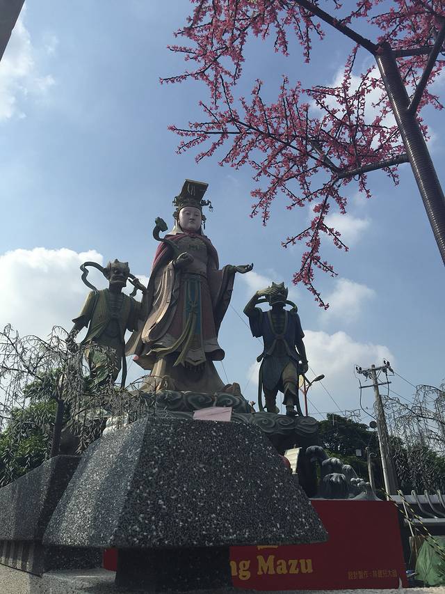 停车场有一个妈祖娘娘的雕像。