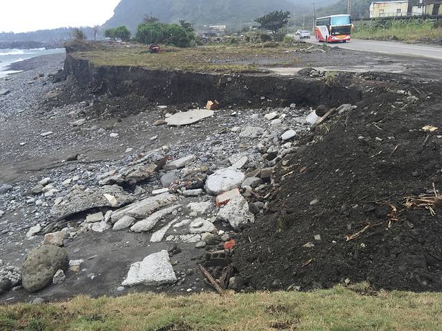 台风登陆点,把道路都吹垮了~辛亏没有影响通车,否则要往回走,原路返回~