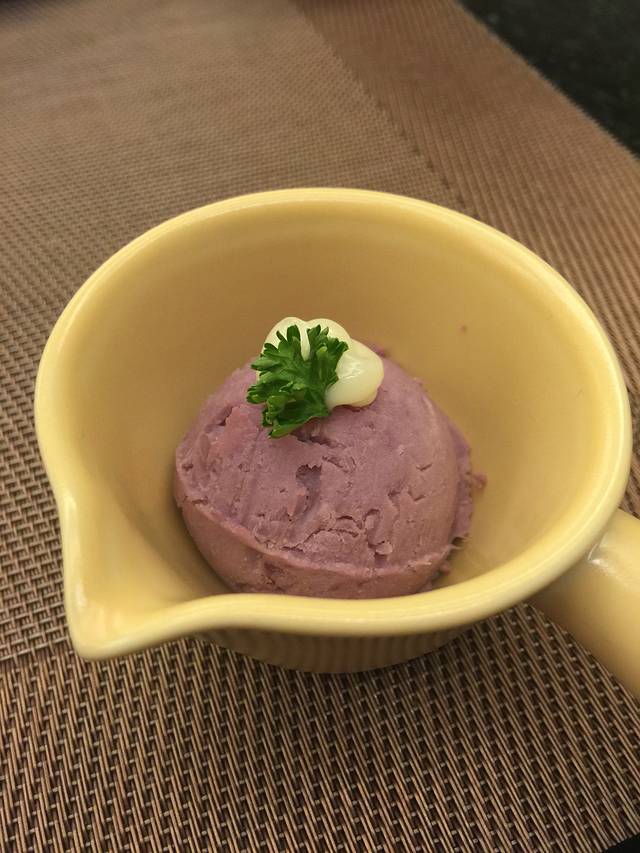 猜猜这是什么?不是冰淇淋,不是沾酱,是紫薯泥~想不到吧,味道没有那么甜,口感跟土豆泥差不多,所以没有吃完,只是觉得好看~