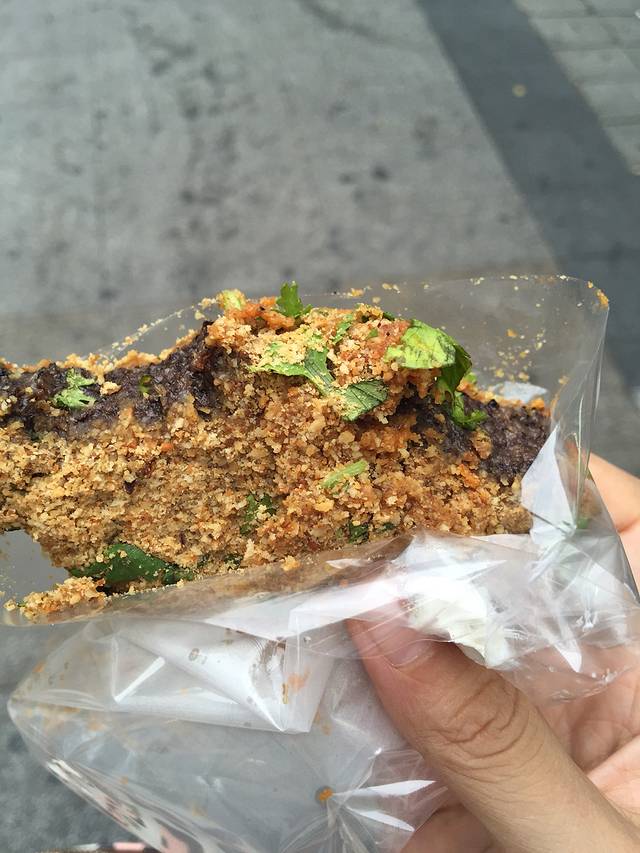 我们在台湾的地陪路上一直推荐说要尝尝台湾的猪血糕,我们就买了一个尝尝~味道啊,很特别,咸咸甜甜的,口感糯糯的,我觉得咱北方人吃不太惯。