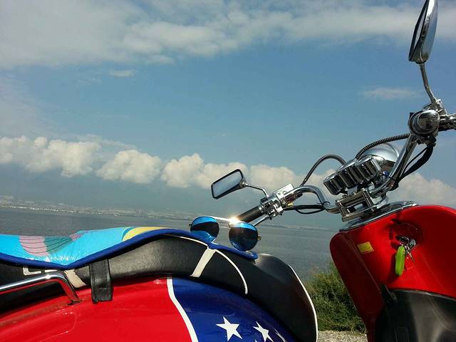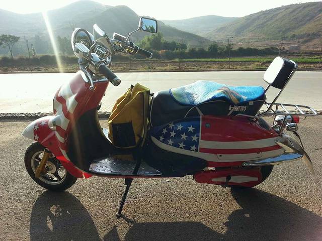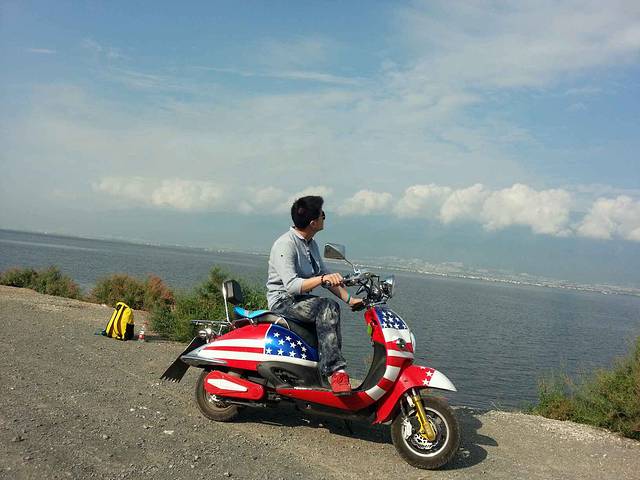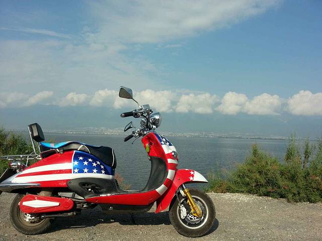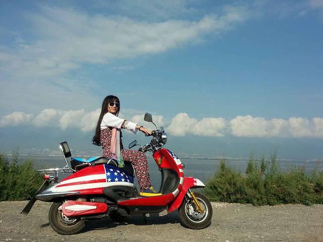 跟老板各种砍价,最后以100块钱包今天晚上以及明天白天的时间租了一辆电动摩托车,特别拉风的(ง •̀_•́)ง。今晚骑另一辆去大理古城游玩,晚上回酒店充满电第二天跟老板换另一辆骑行洱海。