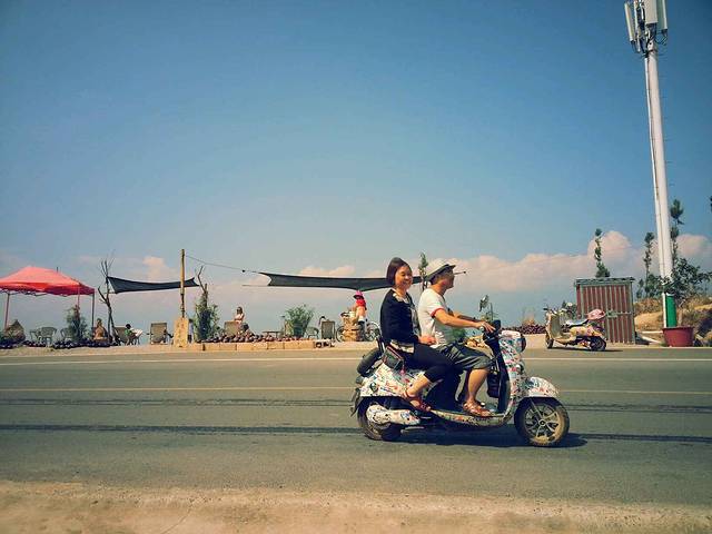 且不说没到双廊,在距离双廊还有10公里左右的时候,电车没有电了,本来在中转站充电就没有冲多久,再次返回,放弃双廊😪距离火车出发还有4小时多。冲了一个半小时,睡了一小觉,准备动身回赶火车。大中午,大理的太阳顶在头上,地面温度估计得爆40°之高,就这样,我们要抓紧回去还车然后赶火车。 谁知道,骑到半路又没有电了,火急火燎的,在途中再次充电,打电话催促租车老板请求帮助,老板人还不错(暂且不说租车老板有没有把车充满电)说来接,以为是开个大车来接,谁知.....又骑来一辆电车拉我们的电车,真可谓世界之大无奇不有啊。 扯了半天绳子,或有位置不对,或有绳子磨断,最后,我载着宝贝骑老板的电车拉着老板,好好的老板来拯救我们,莫名其妙的演变成我们拉着老板回去了。到了租车的地方,也顾不上说话了,老板娘看着我们拉着老板回来,整个人都傻了(๑• . •๑) 此时,距离火车发车只有15分钟不到,老板娘让老板骑电车载我俩去火车站,临走还不忘坑一笔路费(出租车路上堵车,不如电车方便),到了火车站,我俩拿着包就往检票口撂,在最后的一分钟我们冲进了车厢,在门口站着的乘客都惊呆了(ง •̀_•́)ง就这样,留下来灰常深刻的回忆。 这是俺家大臭臭特别要求记下来的,哈哈😄