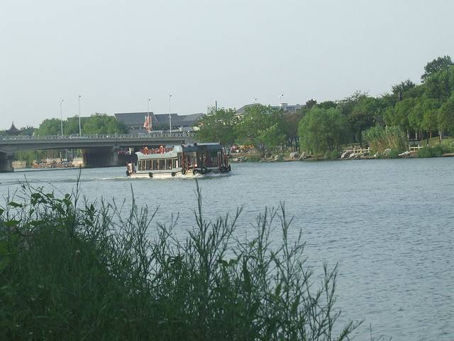 早上由酒店步行367米至石路(1口进)乘地铁2号线宝带桥南方向,(经1站)到广济南路换乘地铁1号线(木渎方向),(经9站)到木渎(1口出),步行178米到中华园大酒店换乘69路(或691路)石公山首末站方向,(经16站)到太湖游客中心东下车,换乘583路车林屋洞停车场方向,(经2站)到太湖公园下车。由于台风原因,太湖涨潮,把许多游玩设施给冲毁和淹没了,因此只是在湖边走了走,看了看,就返回乘583路车木渎换乘枢纽站方向,(经2站)到太湖游客中心东下车,换乘69路(或63路)火车站南广场首末站方向,(经10站)到方家桥下车,步行到木渎古镇西入口进入木渎古镇游玩,木渎古镇有着“吴中第一镇”的美誉。小桥流水、深宅古木,无一不透露这江南的气息。沿山塘街一路向东可以游玩严家花园,古松园,榜眼府第等景点,然后沿明清街一路向北到达北入口,乘2路车(或508、691、692、665、65、游4)津梁街首末站方向,(经5站)到中华园大酒店下车,步行203米到木渎站(1口进)换乘地铁2号线钟南街方向,返回酒店,由于后半程的旅途在吴中区,因此今天晚上要到苏州小院入住,锦江之星店免费寄存行李,太好了,我们晚上取了行李直接打的到苏州小院去了,安排好住宿后,就领着儿子到平江路去游玩夜景了,平江路是一条很别致的街道,路两边都是一些有些破旧但是却很有感觉的古建筑,一侧有一条灵动的小河,自己沿着小河慢慢而行,去体味城市变迁中还仅存的一些古风,顺便吃点宵夜。