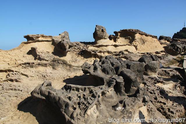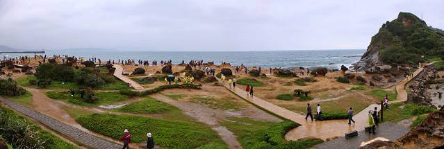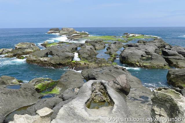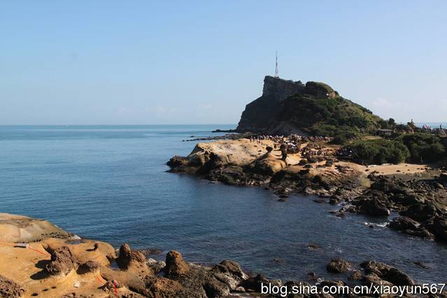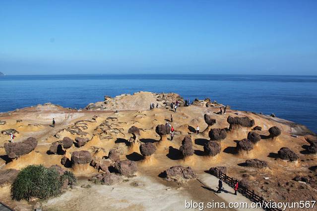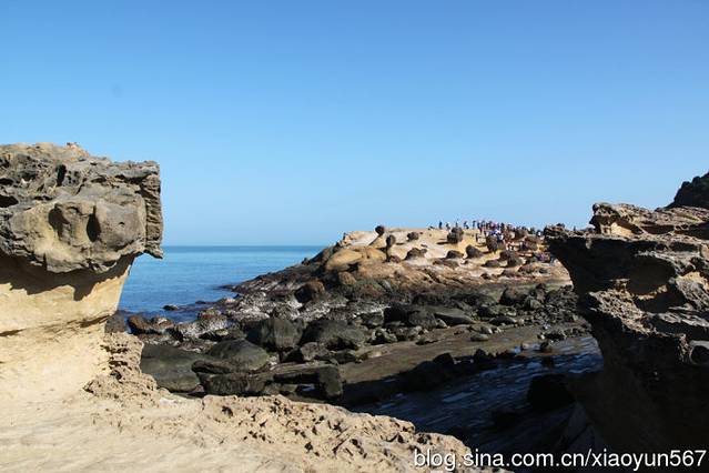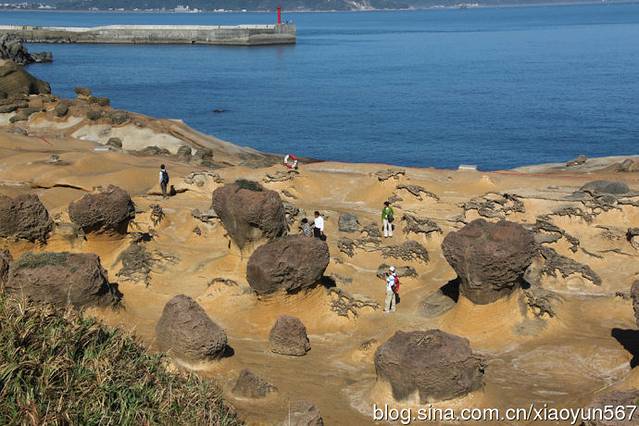 乘坐大巴我们来到台湾野柳地质公园,野柳地质公园因大自然奇特景观而成名。它位于台湾省万里乡,野柳是突出海面的岬角(大屯山系),由于海蚀风化及地壳运动等作用,经千百万年的侵蚀、风化的交互作用,逐渐形成蕈状石、烛台石、姜石、壶穴、棋盘石、海蚀洞等地质奇观,让全长1700米的海岬,成为台湾最负盛名的地质公园。