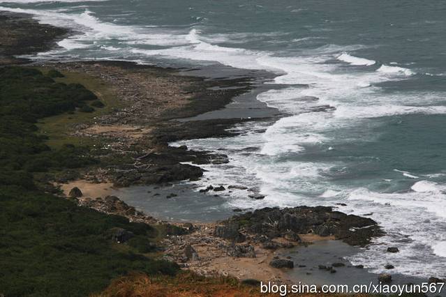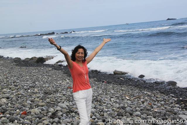 那几位站在湿地的团友,就被浪打湿了鞋,等你感到浪来了,想跑已来不及了。台湾的海滩没有平缓的沙滩,是海沟状,被浪卷走的可能很大。所以导游一直在说,禁止碰到海水,危险大大的,被卷走就会站不起来。