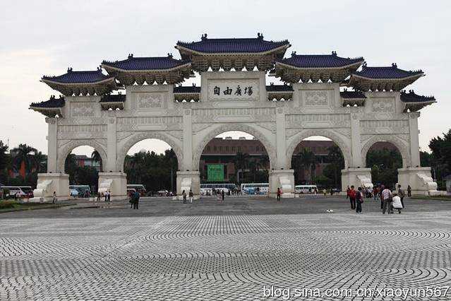 现今之“自由广场”牌楼中正纪念堂牌楼,高30米,是台北市区内最大的牌楼。牌楼之上的牌匾题字原为“大中至正”,故此牌楼也被称为“大中至正门”;2007年12月8日之后,被更换为“自由广场”四字