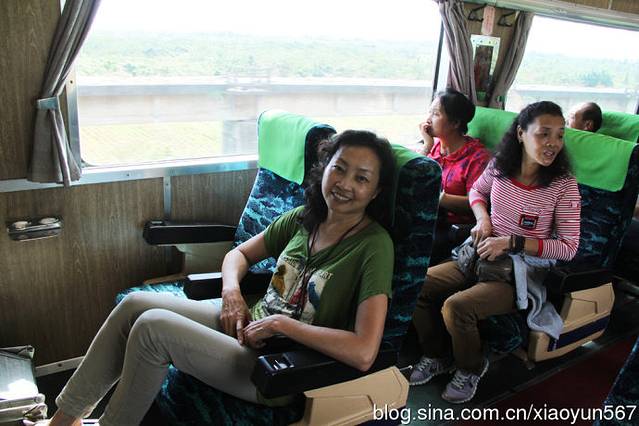 由于山路较窄,弯道多,我们的大巴,不能上山,要换成阿里山景区的车上山,每车六人