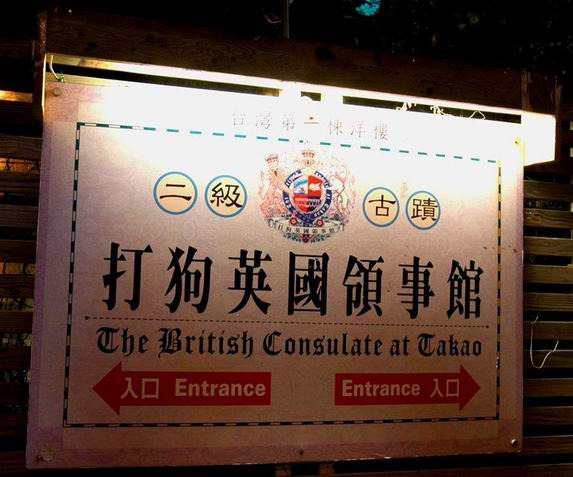 打狗英国领事馆是台湾第一栋建造完整坚固的洋房,洋楼建在一个小山丘上,地理位置十分优越,西临台湾海峡,是货轮出入高雄港的必经之路,东面对着高雄市,可以俯瞰高雄市区和港口。一百四十多年来,旧英国领事馆历经战火和台风的洗礼,曾一度变成断垣残壁,1987年被修复一新并列为二级古迹。领事馆内的陈列室展示了台湾近百年来的文献资料,有台湾近代涉外关系史料,打狗地区开发的人文、历史、地理资料背景,是台湾现存的西洋式建筑中最为古典的英国式建筑。
