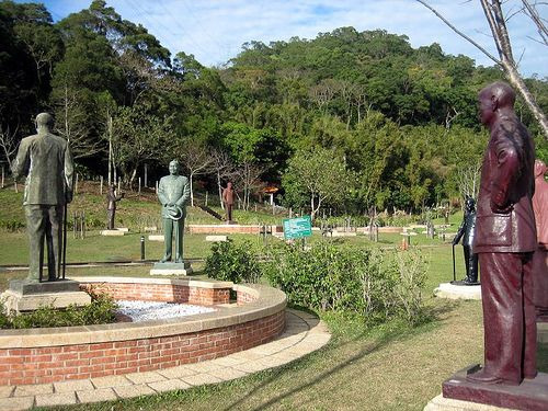 雕塑公园醒目处有一块巨头,上刻有红色的“轨迹”二字。这个公园,也可以说是台湾半个多世纪政治演变轨迹的浓缩。在人类文明史上,专制政体的历史要比民主政体的历史悠久得多。个人崇拜的精神史要比公民独立的精神史悠久得多。但大众的公民意识一旦觉醒,个人崇拜便成为历史的笑柄。生前让人塑像的政治强人,一旦失去了强权的支撑,便让人感到滑稽可笑。想当初,每一雕像创作时无不怀仰视之情,力求营建像主之伟岸高大,然而,无数“崇高”之和,现在却构成一幕喜剧。这种后现代的意味,既为蒋介石始料未及,也为雕塑家始料未及。
