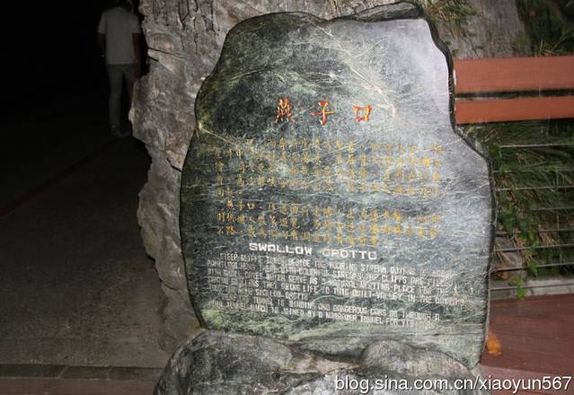 燕子口:两岸大理石峭壁在流水作用下被溶蚀成许多小孔穴,聪明的燕子便以这些小洞为巢,形成“百燕鸣谷”的奇观,故名“燕子口”。但是随着公路上人声、车声的隆隆作响,燕子早已离巢另觅他处安居了。
