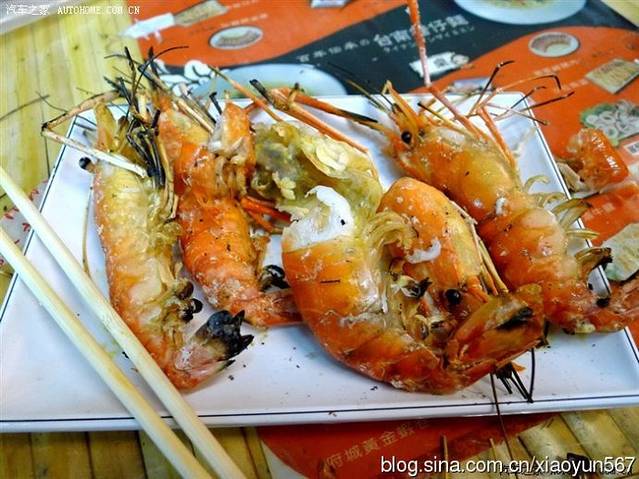 烤虾串,一串150台币左右。烤大虾是六合夜市里面非常有名的一个美食。我们还买了烤杏鲍菇、烤鸡翅。