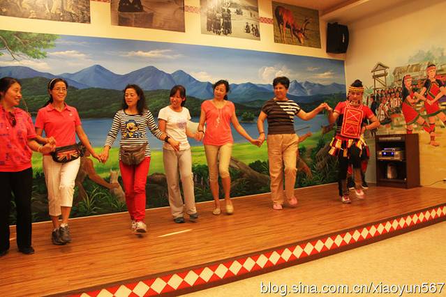 和邵族女青年一起跳舞