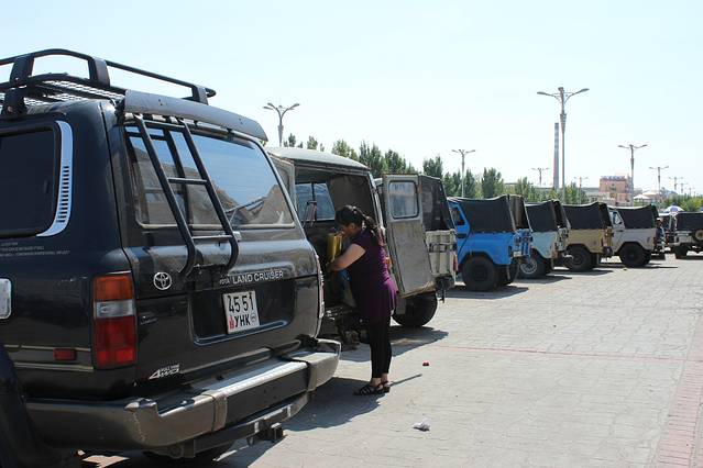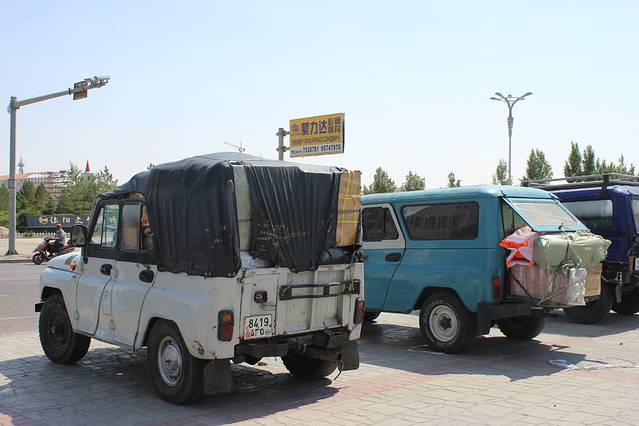满载而归的蒙古车。蒙古国不查超载,所以每辆来进货的蒙古人都把车装的超级满。