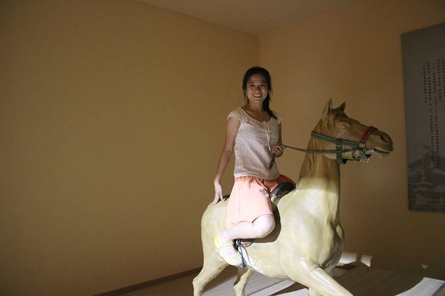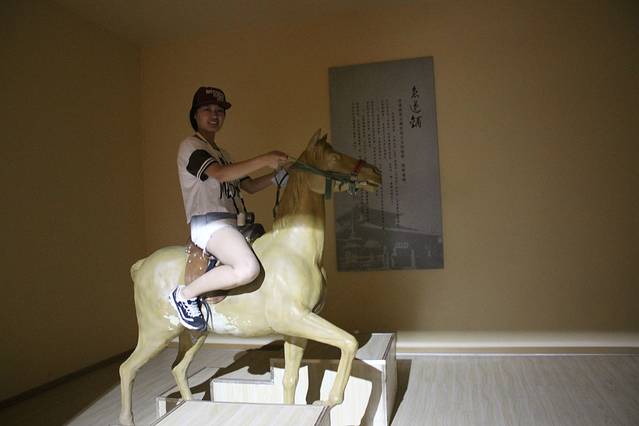 驿站里的假马,虽然是假的,但也和真的马一样高,一样大。旅客可以骑上去体验。