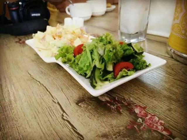 沙拉,一小碟。蒙古人以肉味主食,很少吃蔬菜