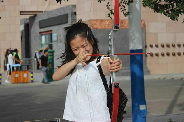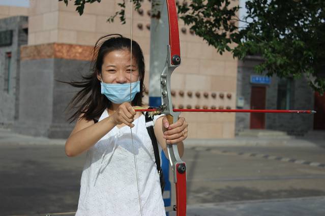 在国门口,有一个射箭的小摊,10元十箭,那箭看上去挺专业的。