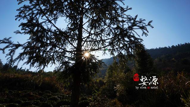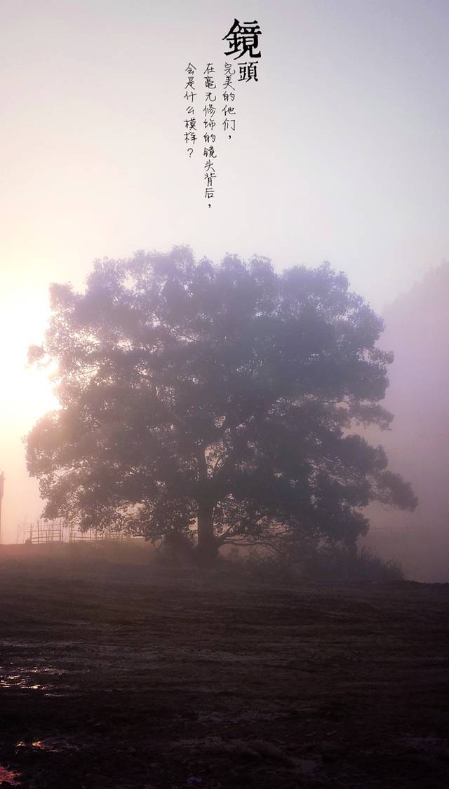 因为出发时去加油,错过了清晨迷雾缭绕的江玲,有丝遗憾,但是还是在加油站边用手机拍了张颇有意境的独树