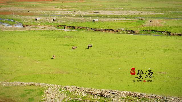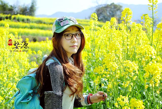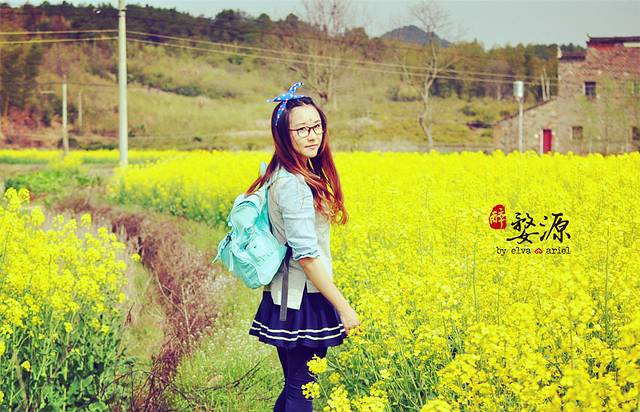 刚到江玲,虽然出发前已经看了无数遍宣传片上的江玲美景,但对于渴望成片成片油菜花的孩子们来说,还是哇声一片。马上就有一个器材党大妈看中我那骚蓝的双肩包,要求拍背影,于是此行的第一张照片应该就在别人的相机里了
