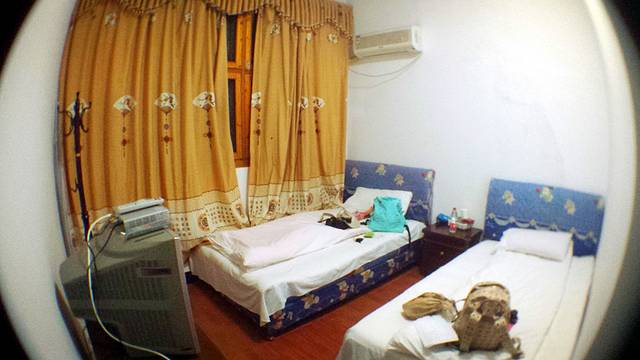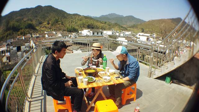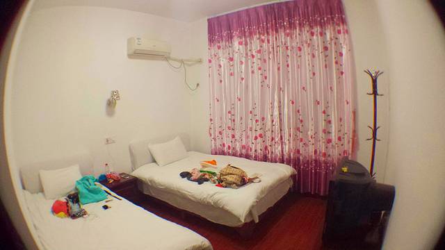 用鱼眼镜头拍的【美乡村客栈】,青青在【去哪儿网】上定的,顶楼有个阳台,看星星很棒,就是被子有点薄。我们是提前2周订的,有些人气颇高的客栈很容易被抢啊,所以该出手时就出手,不过好在选择余地颇多。
