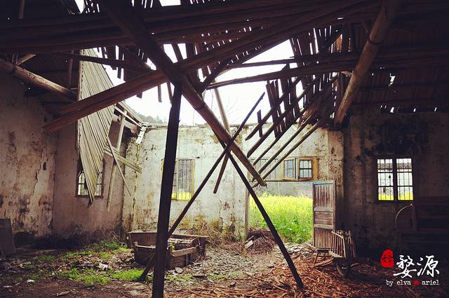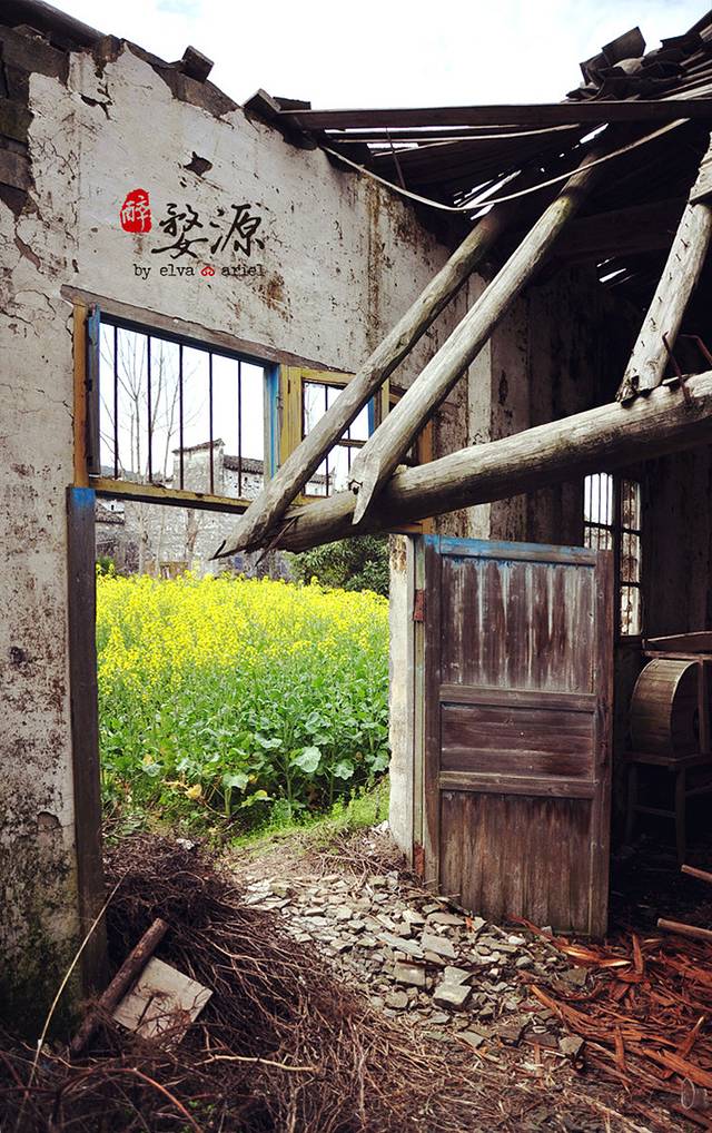一间别有味道的残屋,很适合拍写真,窗外是亮瞎了眼的油菜花地