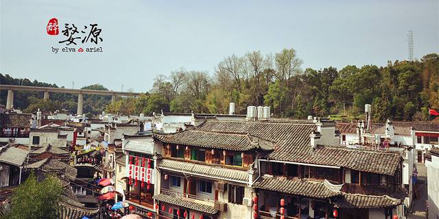 再往前走是一条商业小摊,卖得东西都大同小异,然后就到了大榕树,传说中致青春小说原作中的大榕树。人太多,一点都不小清新了。里面人声鼎沸、繁华故里,商业气息浓郁,不过一座座茶馆、客栈还是非常仿古,让人不禁遐想,会不会有一个武功高强的大侠冷不丁飞身跃下呢!