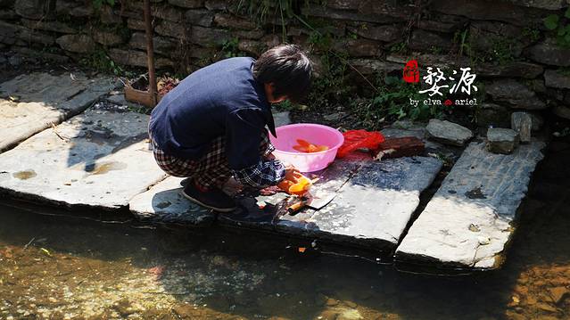 第三天早餐在住的客栈里吃,8元/人,有油条、包子、粥,早上先去了彩虹桥,彩虹桥景致SOSO,水车前的石墩桥走一下还挺有意思,就是人太多了!