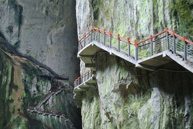 嵌入进山体的楼梯,走在上面会不会有一丝的心惊胆战呢?