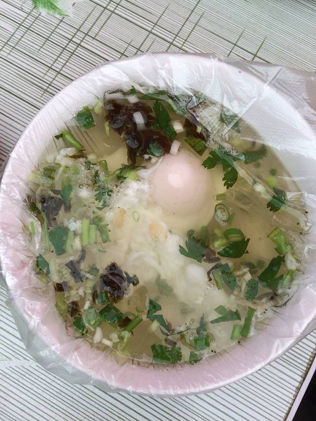 紫菜荷包蛋,还加的有葱花香菜