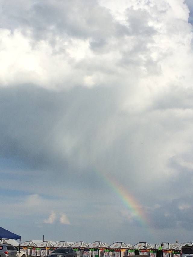 青海湖边的彩虹,没有那天绵阳持续得久。哦哦,注意下方,一排排整齐的帐篷