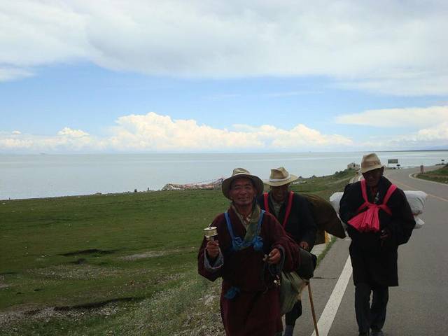 在青海湖,有4⃣️钟出行方式。1⃣️汽车2⃣️自行车3⃣️暴走4⃣️朝圣~第3⃣️4⃣️种方式是需要何等的毅力和勇气以及执着的信念,看着虔诚的朝圣者用自己的身体丈量着青海湖的长度,祝福他(她)们的朝圣之路平安