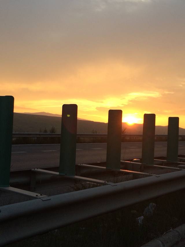 看夕阳西下,赶路的人儿还在高速路上