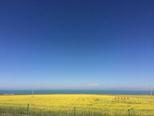 湛蓝的湖水,金黄的油菜花,海天一色的美景……叫人怎能不陶醉