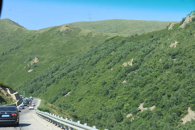 路很好跑,自驾的车子井然有序。路两边是喘着小口粗气的群山和满眼的翠绿。