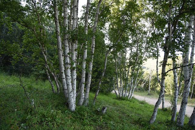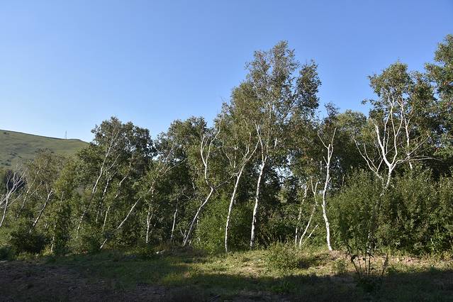 我们要去的是大滩镇附近的一个没有开发的高山草原,我不知其名。山脚下是大片的白桦林,我还是第一次这样近距离的置身其中。