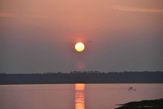 随着太阳的升腾,天地间色彩变得丰富,早起的渔人开始了一天的劳作,勤劳的鸥鸟展翅高飞于天地之间。