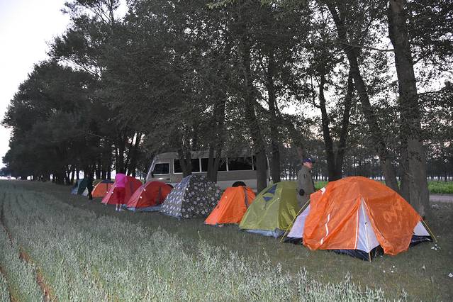 清晨早起,先给我们的村子拍一张照片。12顶帐篷,23个人一起露营,真得很享受。