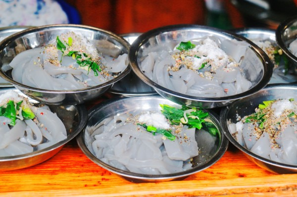 街道旁边卖纳西米糕的小摊很多,一份5元钱。