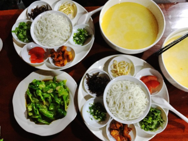 云南过桥米线,米线和菜都是自己用汤烫熟了吃