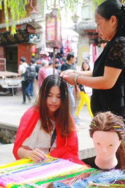 来到古城第一件事,冬瓜做了一个文艺小青年必做的—编彩辫!