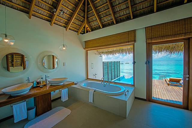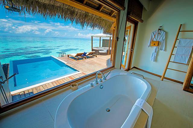 阿雅达岛(AyadaMaldives)入选理由是开放式的浴室和水屋的观海吊床,让人不禁想到听着海浪声打瞌睡的画面。