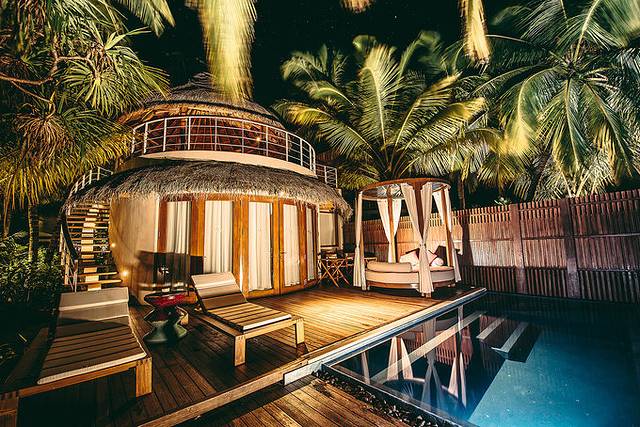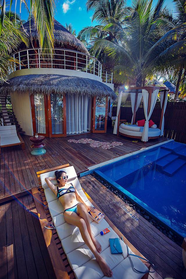 宁静岛(W Retreat& Spa) :入选理由是沙屋大气的双层设计和水屋露台的超大空间,质朴又自然,泳池内还有灯光,在夜里和天空的星星相呼应,让夜幕笼罩的大海散发活力。
