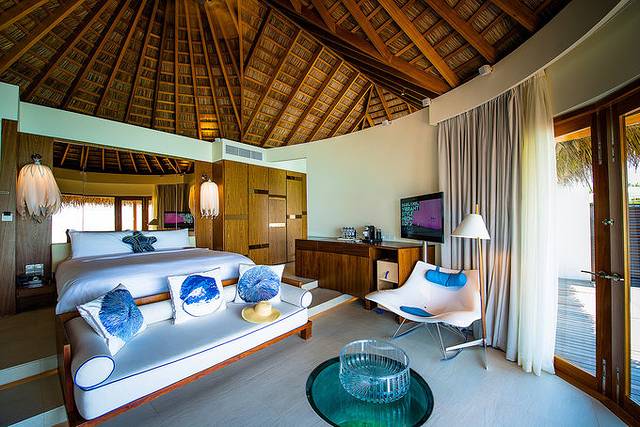 这种双层别墅呈扇形散布在W岛,私密性极好,私人泳池13平米,客房面积118平米,上层观海甲板70平米,室内bose音响系统和免费wifi。美丽的大海近在眼前,可以在私人泳池里畅游,可以窝在观海甲板上的沙发里听音乐,可以在夜晚躺进大大的浴缸里看着星星放松身心,每一种体验都乐趣无穷……