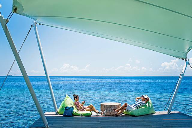 芙花芬岛(HuvafenFushi Spa Resort Maldives):入选理由是甲板休息区域分成上下两层,上层有Dining Table,日光浴躺椅,下甲板区阶梯让您直接由观景露台直接步入水晶般透明海水中。