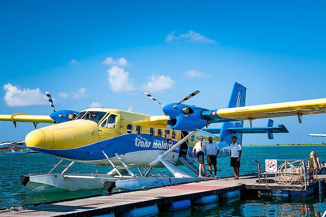 马累国际机场(Ibrahimnasir international Airport)坐落在HULULE岛上,有三个登机口,24个手续办理柜台,机场有邮局,银行,外汇兑换,餐厅,休息室等,设置齐全。走出机场大厅,就可以看到一字排开的所有度假村服务台,简单实用。,如果你的航班是白天抵达,就直接在度假村服务台出示预订单,会有接待人员送你上快艇或者水上飞机,如果是晚上抵达,度假村服务台不一定有人值班,你需要找到拿牌子的转机酒店接机人,或者自己打车或者木质帆船去酒店。