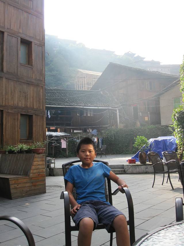 走前,苗寨住的宾馆门口来一张。谢谢老板送的可以插花的玻璃瓶!
