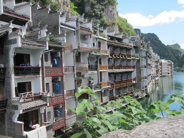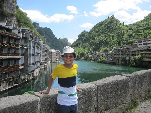 一到镇远就被这美景震撼了,好久都没有看到这么蓝的天,空气清新。就是我们住在古镇的中心处,从公共汽车下来,拖着行李还要走好长一段路。