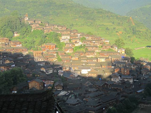从镇远做公共汽车去了火车站,镇远火车站真是很小。检票候车的时候,一位旅客和检票员吵架。互相比赛嗓门大,还拍桌子,检票员吵累了,出去逛一圈再回来接着吵,真是奇葩。搞得大家都要慢慢排队检票!坐火车去凯里,在火车站等呀等。因为是过路车,所以晚点很久。从火车站出来,上了出租车,道路破烂,据说是因为下雨滑坡在修路。途中,看到有在建的高速路,被告之以后高速路修好了会很方便。然后,我们的的士大哥就带我们体验了部分高速路段,这叫一个颠、一个脏、黄沙漫漫呀!苗寨很小,人很多。