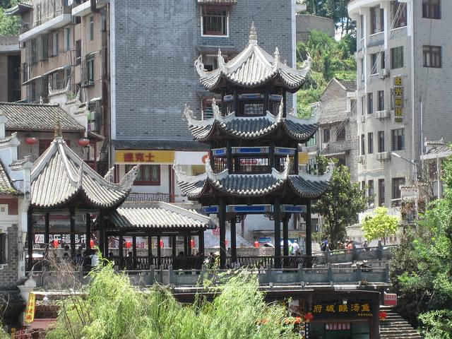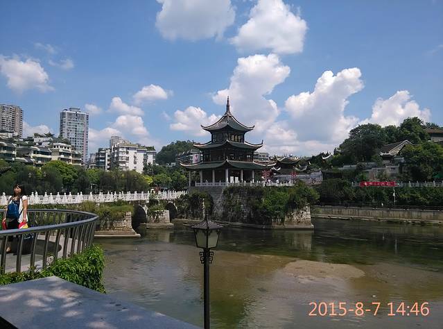 睡到自然醒,吃了当地的粉面和各种小吃,然后乘公交去花溪湿地公园。因为是周六,到处都是人,车上也很挤。不过公交的冷气很足,虽然站了一个多小时,想想票价才两元也是很划算的。因为天气热,从湿地公园乘出租去了天河潭景区,花了50元。后来发现有小巴车到天河潭,每人6元就可以了。
